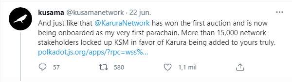 DeFi platform Karura is the winner of the first parachain auction in Kusama. On June 22, Kusama announced on his Twitter account that Karura was the first winner.